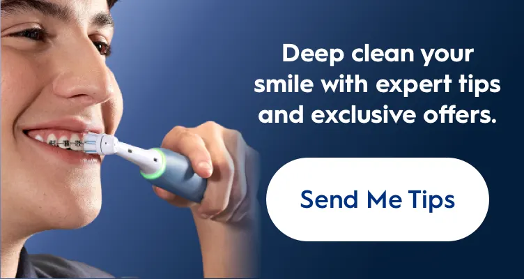Floss at least once a day to remove more plaque and debris from tight spaces. Oral-B Super Floss is specially designed to help clean around braces and other dental appliances. To further remove stain-causing particles, supplement your regular flossing routine with the Oral-B Aquacare Pro-Expert Irrigator, its unique Oxyjet Technology mixes air and water to form clean-boosting microbubbles.