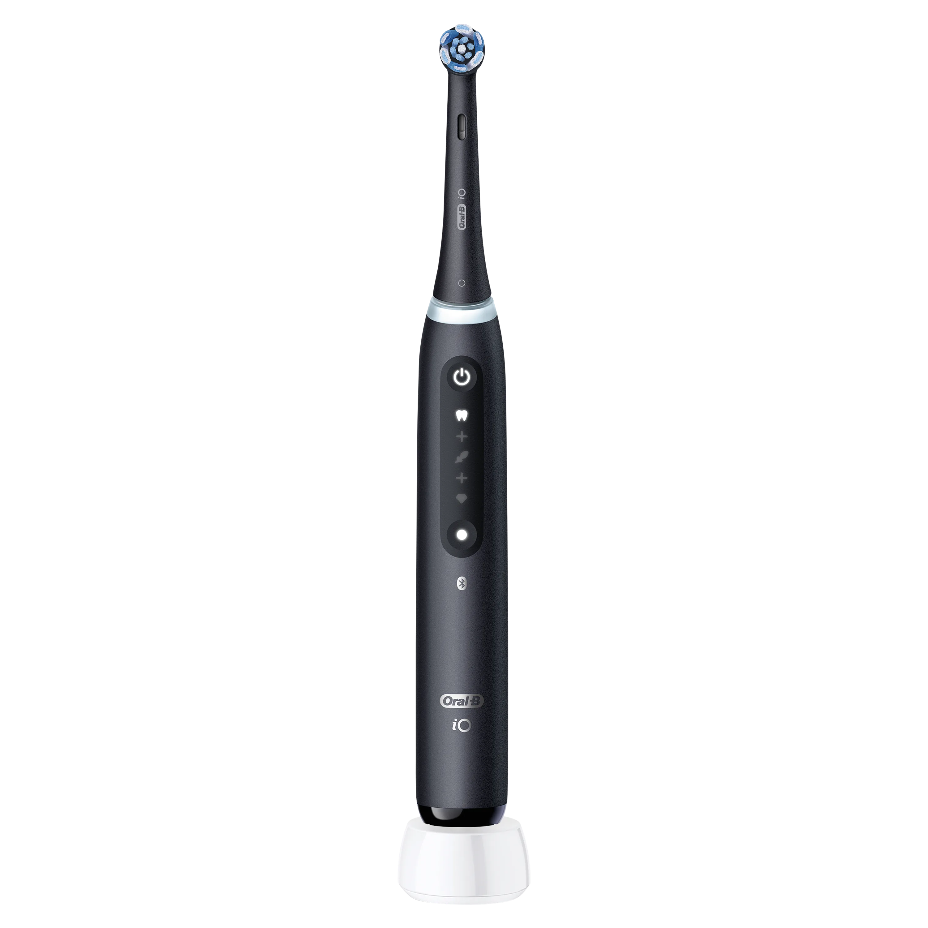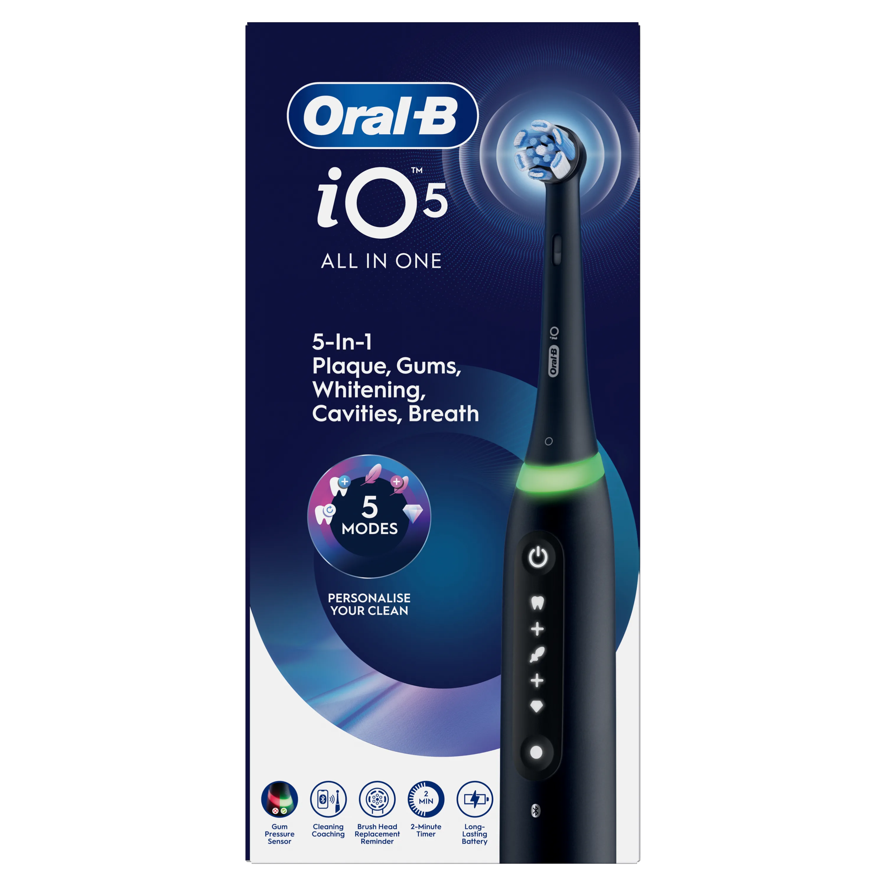 The iO5 electric toothbrush features Oral-B’s best technology, combining a dentist-inspired round brush head with micro-vibrating bristles for a professional purifying clean feel at home. The Smart Pressure Sensor helps prevent you from brushing either too hard or too softly to better protect your gums. A.I. Brushing Recognition recognises your brushing style and guides you to better brushing every day. Connects to the free Oral-B App for real-time brush tracking & guidance across 6 brushing zones. Replace your Oral-B iO toothbrush head every 3 months for the best results.