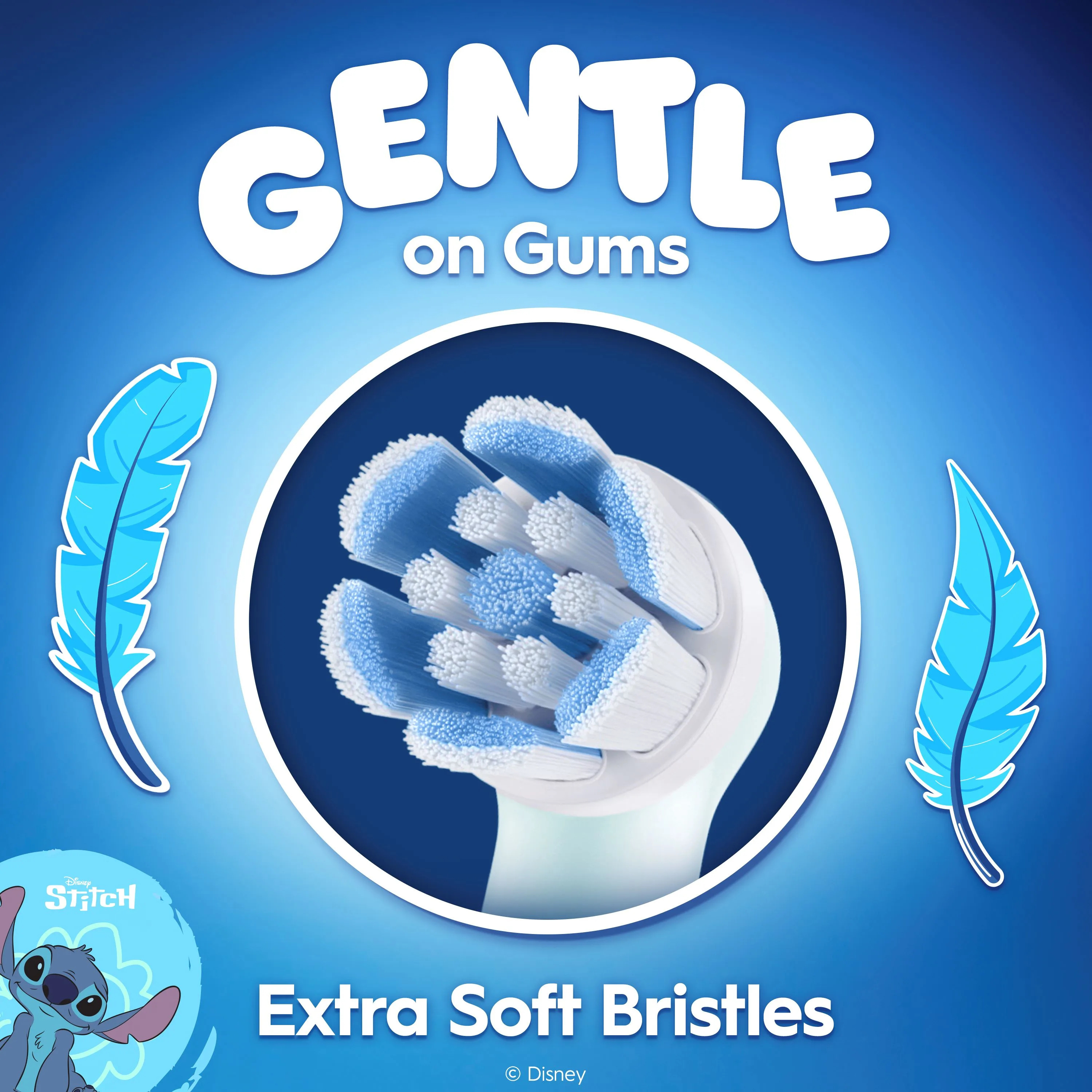 The Oral-B iO Kids 6+ toothbrush head gives kids the fun of Stitch with the gentle, effective clean of a dentists-recommended Oral-B toothbrush. The extra soft bristles and small round head are specifically designed for kids ensuring being tough on cavities while gentle on gums & wobbly teeth.