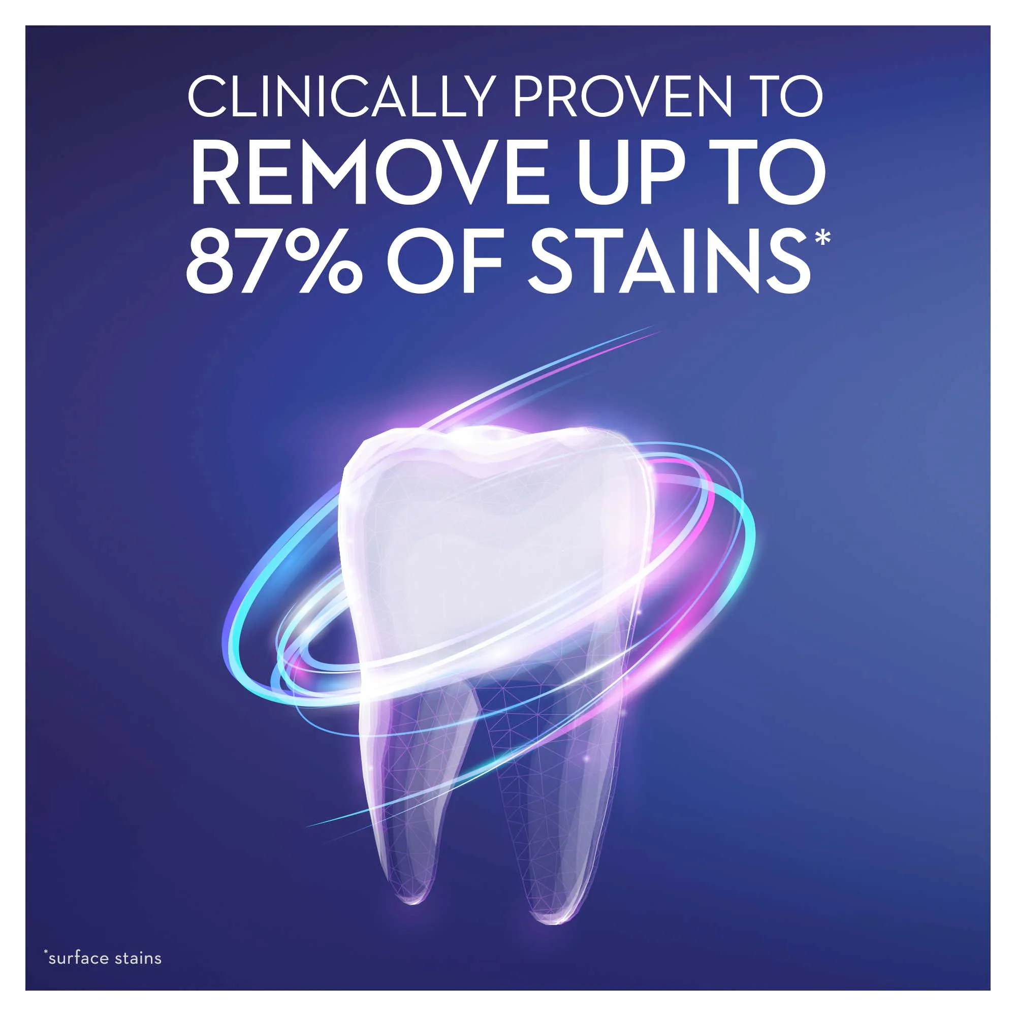 Whitens by removing up to 87% of surface stains